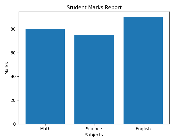 Name of the side (Y) axis. - plt.title(“Student Marks Report”)